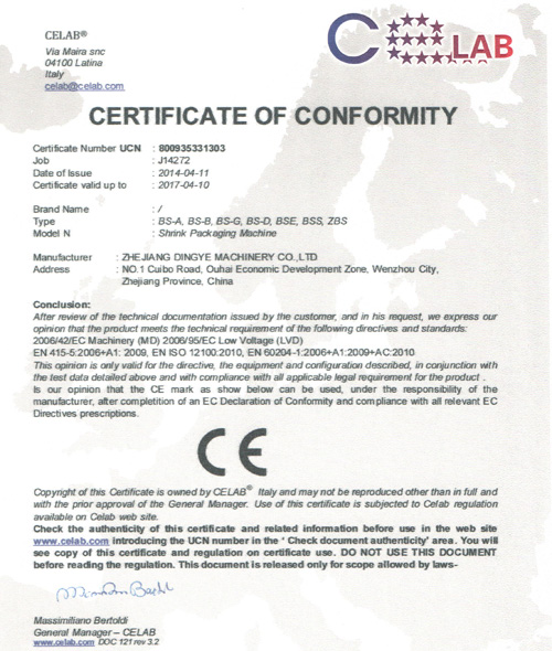 鼎業收縮機CE證書