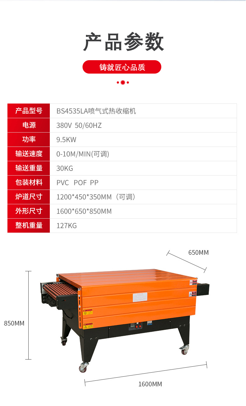 - 緊密貼合產品:噴氣式收縮機利用熱空氣噴射,使薄膜能夠緊密地貼合在產品的每一個角落和輪廓上。對于形狀復雜的產品,如帶有凹凸紋理的手工藝品或不規則形狀的機械零件,噴氣式熱空氣能沿著產品表面流動,確保薄膜均勻收縮,呈現出精致的包裝外觀。這種緊密貼合還可以增強產品在運輸和展示過程中的穩定性,防止產品晃動或相互碰撞而受損。