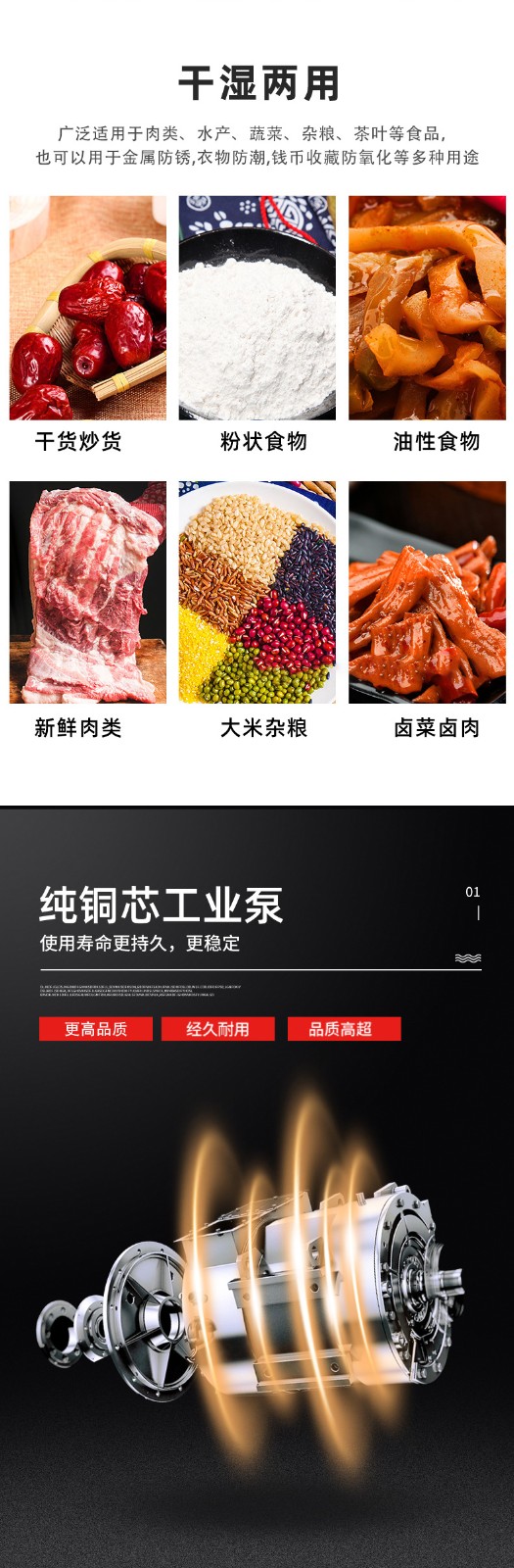 - 真空泵規(guī)格:這是決定效率的基礎(chǔ)。真空泵的抽氣速率(單位 m3/h)越快,達到目標真空度的時間就越短,單次包裝周期隨之縮短。