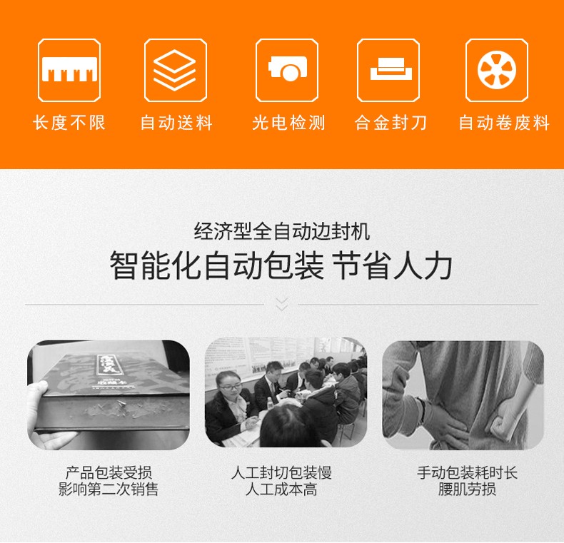 全自動邊封熱收縮包裝機自動化程度高,邊封設計使產品包裝長度無限制