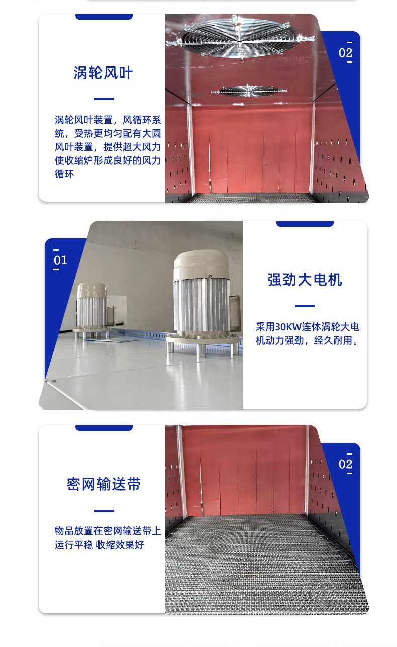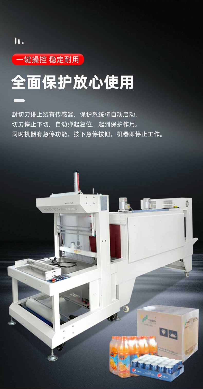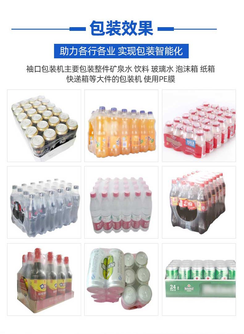 袖口式封切熱收縮包裝機(jī)憑借 高效密封、防塵防潮、貼合定型、便于堆疊運(yùn)輸 的核心優(yōu)勢,廣泛應(yīng)用于多行業(yè)的標(biāo)準(zhǔn)化包裝需求,尤其適配批量生產(chǎn)的規(guī)則 / 異形產(chǎn)品組合包裝。 一、食品飲料行業(yè)(最核心應(yīng)用領(lǐng)域) 瓶裝 / 罐裝產(chǎn)品組合包裝 礦泉水、啤酒、飲料、涼茶等 多瓶捆綁包裝(如 6 瓶 / 12 瓶 / 24 瓶組),無底托收縮膜直接包裹,替代傳統(tǒng)紙箱 / 膠帶,降低包裝成本 30%+,且透明膜可展示產(chǎn)品品牌; 罐頭、醬料瓶、食用油桶等 單瓶 / 多瓶密封包裝,防止運(yùn)輸過程中泄漏、氧化,延長保質(zhì)期(尤其適用于含油脂、易受潮食品)。 零食與烘焙產(chǎn)品包裝 餅干盒、薯片罐、面包禮盒等 多盒組合包裝(如 3 盒 / 6 盒套裝),收縮膜緊密貼合,避免禮盒散開,同時防塵防潮,提升禮盒檔次; 冷凍食品(如速凍水餃、湯圓)的 外箱收縮包裝,強(qiáng)化箱體密封性,防止冷鏈運(yùn)輸中受潮解凍。 符合食品級包裝標(biāo)準(zhǔn)(適配 PE/POF 無毒膜),包裝速度快(8-15 包 / 分),適配生產(chǎn)線連續(xù)作業(yè),同時透明包裝便于終端貨架展示。 高效量產(chǎn),適配規(guī)模化生產(chǎn) 全自動機(jī)型包裝速度達(dá) 8-25 包 / 分鐘(單排)、15-40 包 / 分鐘(多排),支持 24 小時連續(xù)作業(yè),匹配食品飲料、日化等行業(yè)生產(chǎn)線節(jié)拍; 換產(chǎn)靈活,參數(shù)化存儲 100 + 組產(chǎn)品規(guī)格,切換僅需 2-5 分鐘,無需拆卸機(jī)械部件。 包裝效果優(yōu)質(zhì),防護(hù)與展示兼具 熱收縮膜緊密貼合產(chǎn)品輪廓,形成密封、防潮、防塵、防刮的立體包裝,降低運(yùn)輸損耗率至 0.5% 以下; 支持透明膜 / 彩印膜包裝,透明膜可展示產(chǎn)品細(xì)節(jié),彩印膜可印刷品牌 LOGO 與促銷信息,兼顧防護(hù)與品牌營銷。 成本可控,降本增效顯著 無底托包裝設(shè)計(jì)替代傳統(tǒng)紙箱、膠帶,包裝材料成本降低 30%-50%,同時節(jié)省倉儲與運(yùn)輸空間 40%; 采用紅外加熱或石英管加熱技術(shù),比傳統(tǒng)電熱絲節(jié)能 30%-50%,待機(jī)自動降功率,長期運(yùn)行成本更低; 全自動機(jī)型僅需 1 人巡檢,降低人工成本 80%,避免人工操作誤差。 兼容性強(qiáng),適配多場景需求 可包裝方形、圓形、異形等多種形態(tài)產(chǎn)品,支持單件 / 多件組合包裝,產(chǎn)品尺寸覆蓋 50mm×30mm×20mm 至 800mm×600mm×500mm(可定制更大規(guī)格); 適配 PE、POF、PVC 等多種熱收縮膜,滿足食品級(FDA/ROHS)、醫(yī)藥級(GMP)、工業(yè)防靜電等不同行業(yè)標(biāo)準(zhǔn)。 智能化操作,易上手易維護(hù) PLC 觸控屏可視化操作,參數(shù)設(shè)置直觀,普通工人 1-2 小時即可獨(dú)立操作,支持故障自動報(bào)警與修復(fù)提示; 模塊化結(jié)構(gòu)設(shè)計(jì),封刀、加熱管等易損件更換便捷,日常維護(hù)僅需清潔、緊固,維護(hù)成本降低 40%。 環(huán)保合規(guī),符合綠色生產(chǎn)趨勢 采用可回收、無毒環(huán)保膜材,無粉塵、無異味排放,符合全球綠色包裝政策; 減少紙箱、膠帶等不可降解材料使用,降低快遞垃圾與資源浪費(fèi),適配電商、物流行業(yè)環(huán)保要求。