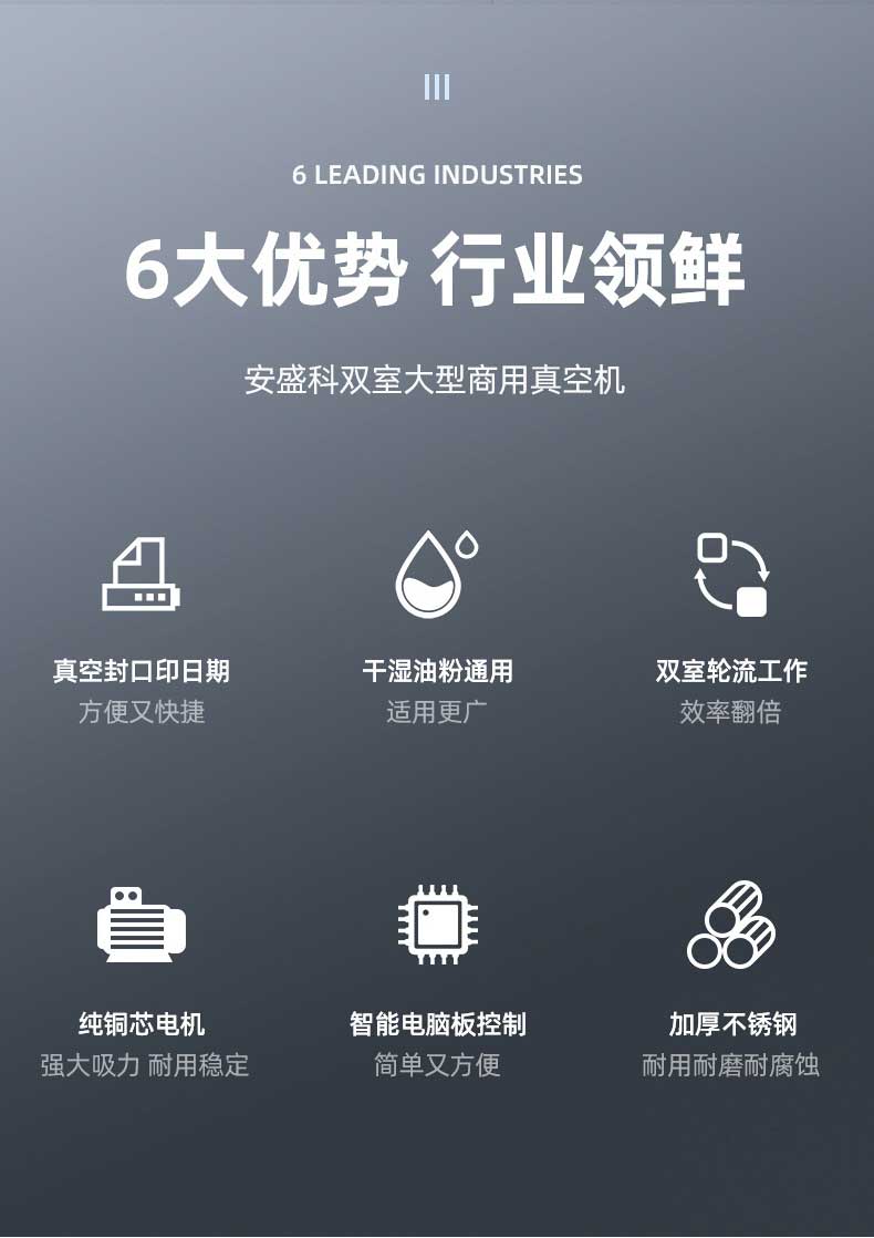 設(shè)備核心創(chuàng)新在于真空室的凹槽式設(shè)計(jì),真空室內(nèi)腔下凹深度可達(dá)10-40厘米(支持定制),鹵味拼盤、整只帶湯燒雞、大份預(yù)制菜等產(chǎn)品可垂直或傾斜放置,袋內(nèi)湯汁自然匯聚于凹槽底部,與封口線形成安全距離。配合“液體防吸智能程序”,設(shè)備采用“先微壓排氣再深度抽真空”的梯度模式,緩慢排出袋內(nèi)空氣的同時(shí)避免湯汁飛濺,解決了傳統(tǒng)設(shè)備抽真空時(shí)“噴液進(jìn)泵”的維修難題。