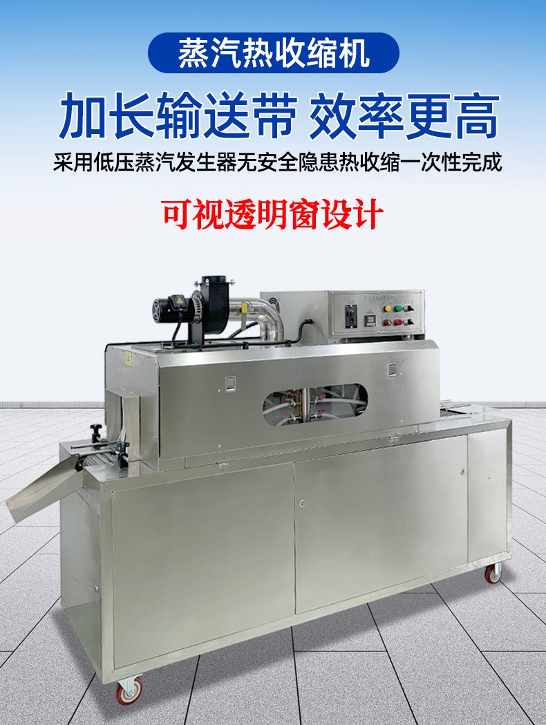 - 輸送系統:用于將待包裝的產品輸送到蒸汽收縮區域,常見的有輸送帶、輸送鏈條等,材質多為不銹鋼或其他耐高溫、耐腐蝕材料。
