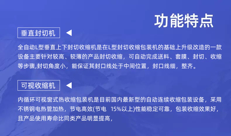 適合規(guī)則 / 不規(guī)則盒裝、瓶裝、禮盒裝產(chǎn)品(如食品禮盒、醫(yī)藥盒、日化套裝),尤其適配批量≥300 件 / 小時(shí)的生產(chǎn)線,相比 L 型封切機(jī)更適合易折皺、需精準(zhǔn)封口的產(chǎn)品。