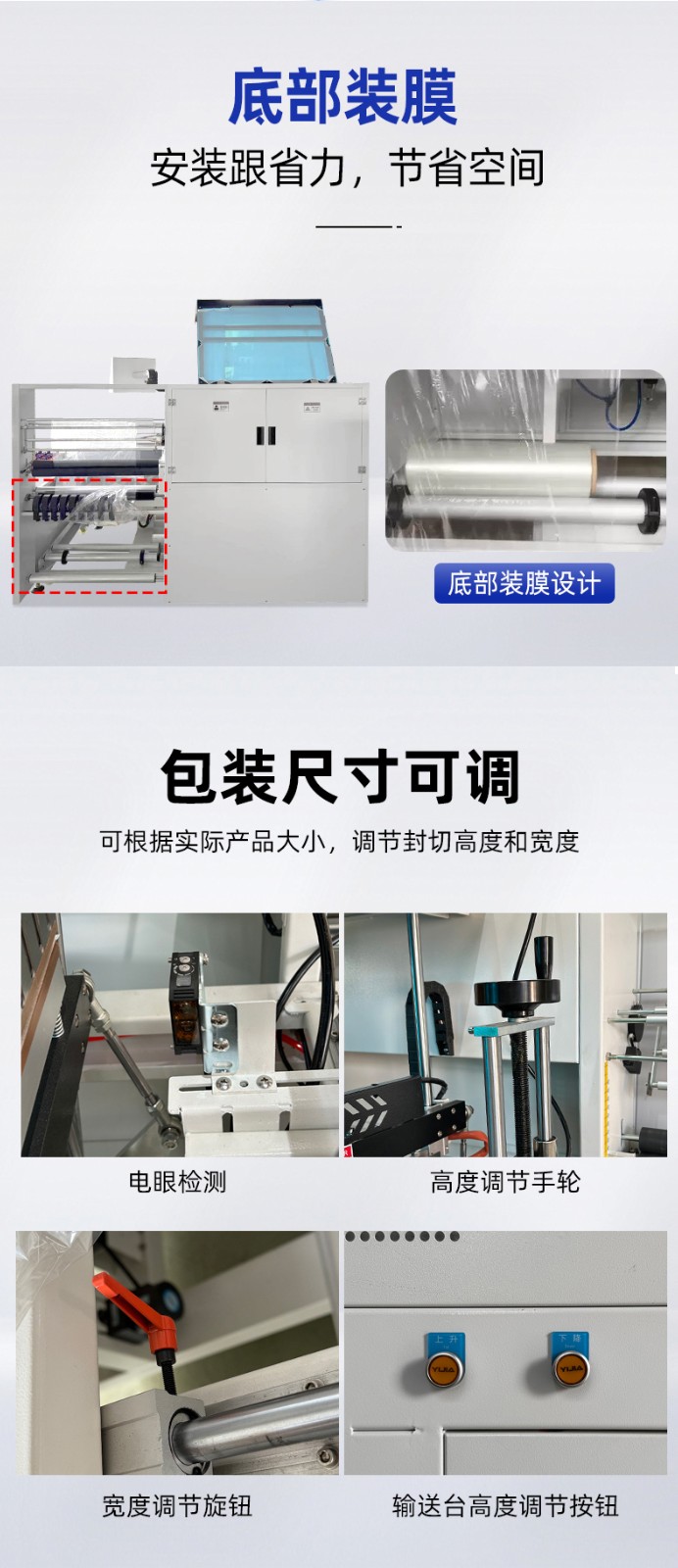 適用范圍廣:通過加裝水平及垂直兩組電眼,可輕松完成薄或小的包裝物的封口包裝作業(yè),也可通過調(diào)整封刀高度適應(yīng)不同高度產(chǎn)品的包裝。