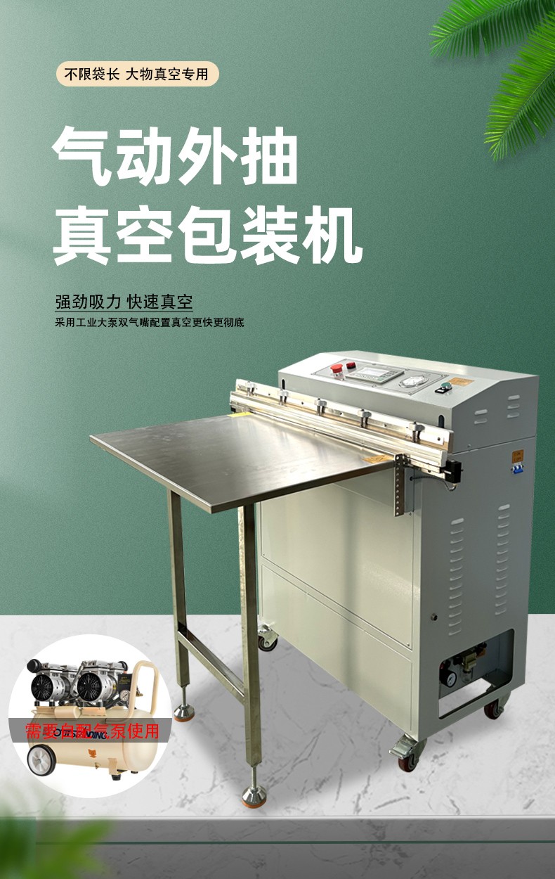 外抽真空包裝機是一類外置式抽氣的包裝設備,通過將抽氣嘴伸入包裝袋內(nèi)完成抽真空、封口作業(yè),適配各類包裝袋(尤其是大尺寸、異形件包裝),廣泛應用于電子元器件、五金配件、食品、醫(yī)藥、家紡等行業(yè)。