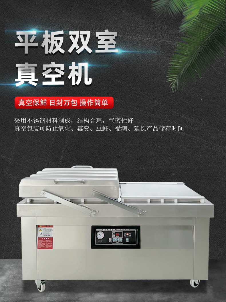 雙室平板真空包裝機對比單室真空包裝機,核心優勢集中在作業效率、生產連續性、人工利用率: