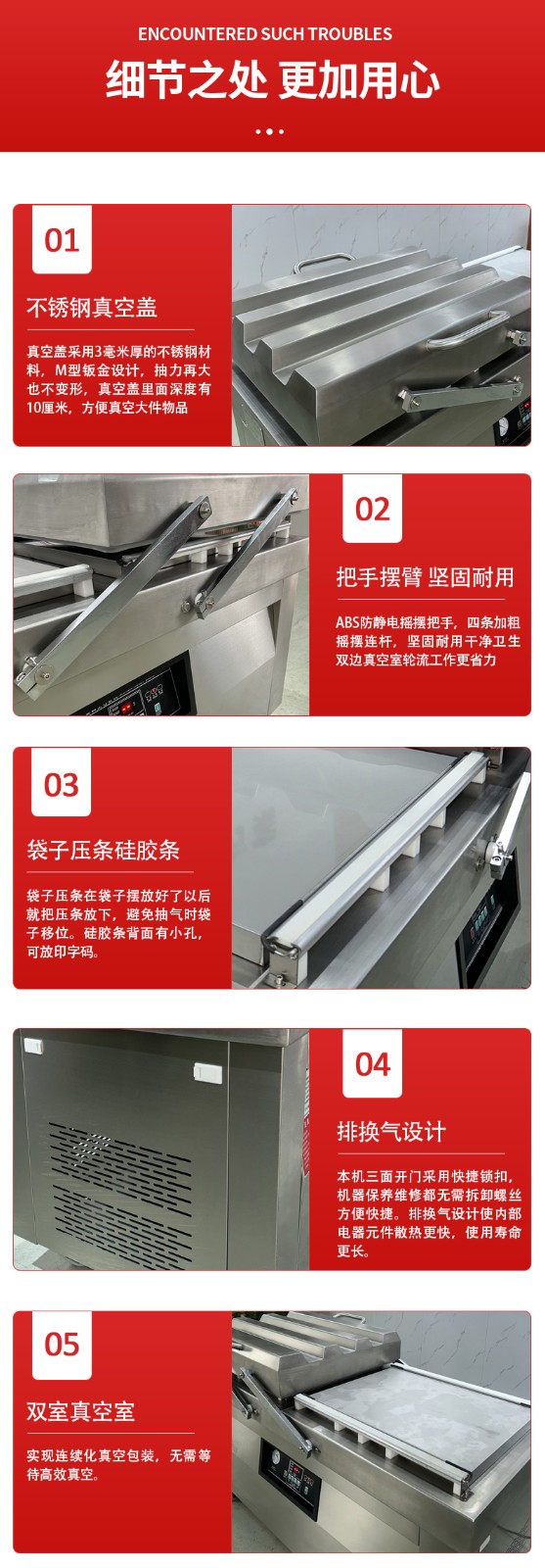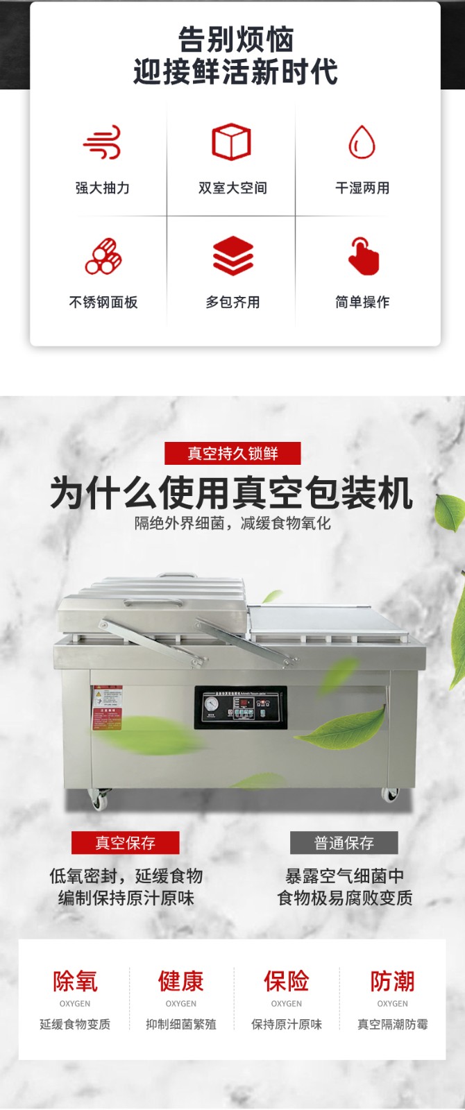 - 適配更多批量包裝場景對于食品、醫藥等需要連續、穩定包裝的行業,雙室機的連續性優勢尤為突出,能避免因單室機的間斷性作業導致的產能瓶頸;而單室機更適合實驗室、小型門店、家庭作坊等小批量、間歇性包裝的場景。