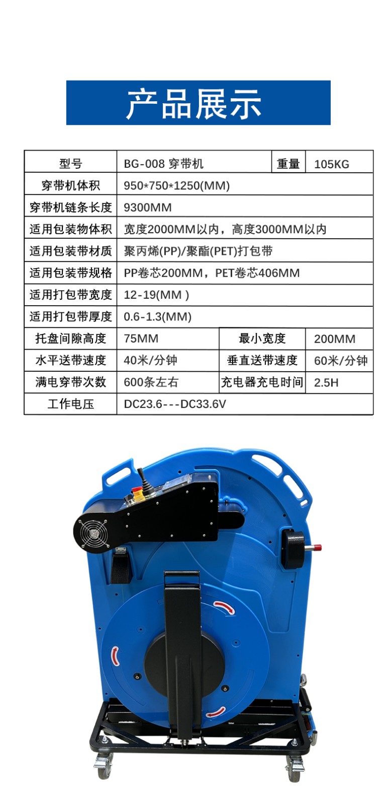 - 穿帶機是一種在包裝流程中起輔助作用的設(shè)備,主要用于將打包帶穿過被包裝物品周圍或包裝結(jié)構(gòu)中的特定位置,以便后續(xù)進行打包操作。它可以被看作是包裝自動化生產(chǎn)線中的一個環(huán)節(jié),能夠有效提高打包的效率和準(zhǔn)確性。
