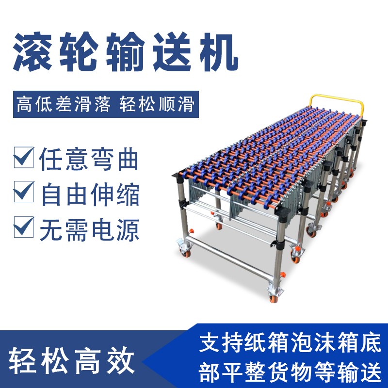 - 滾輪輸送機是一種利用滾輪的旋轉(zhuǎn)來輸送物品的設(shè)備。它可以分為無動力滾輪輸送機和動力式滾輪輸送機。無動力滾輪輸送機主要依靠物品的自重或外力推動,如人工推動,使物品在滾輪上移動。動力式滾輪輸送機則配備電機等動力裝置,通過傳動系統(tǒng)帶動滾輪旋轉(zhuǎn),從而自動輸送物品。
