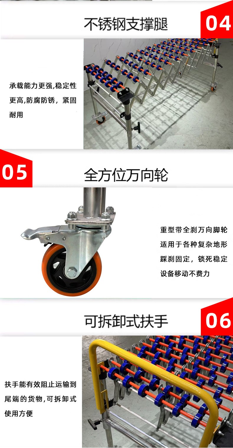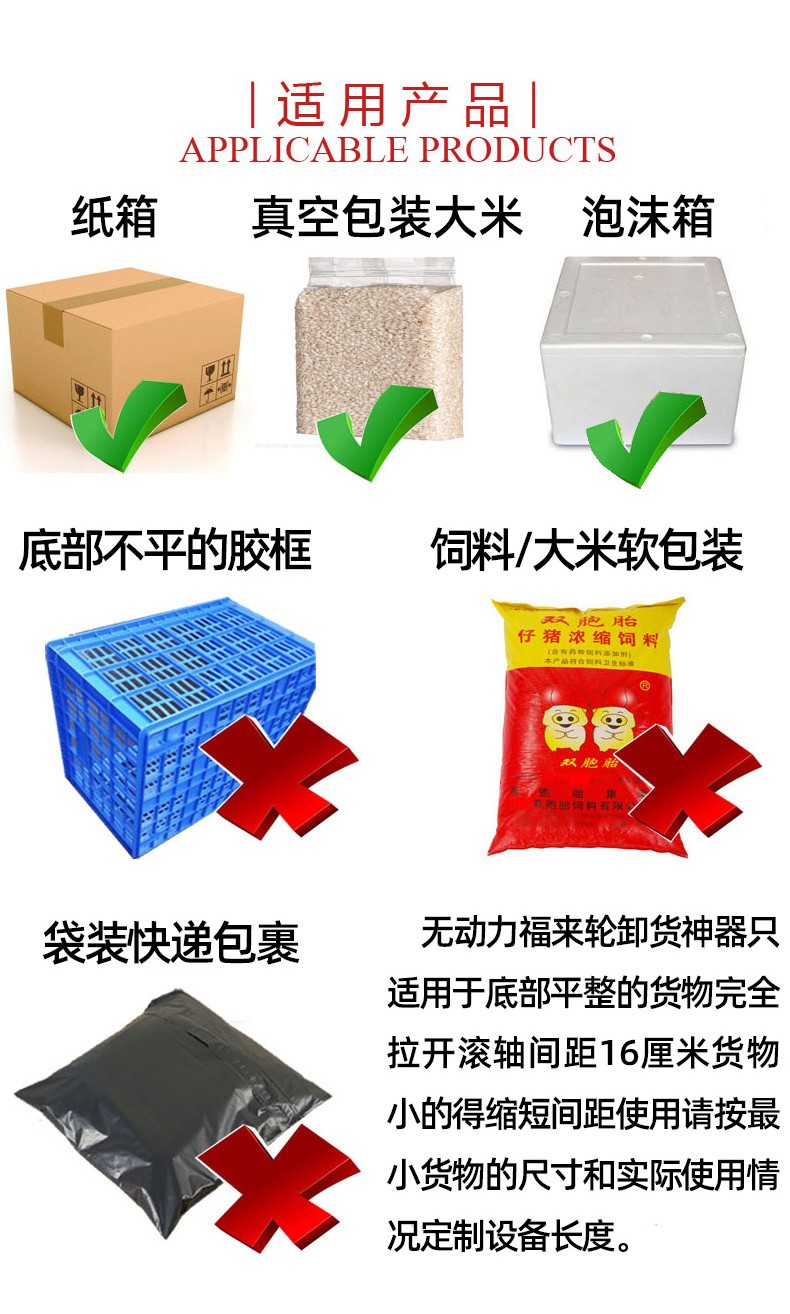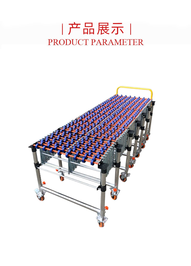 - 在無動力滾輪輸送機中,當(dāng)物品放置在滾輪上時,利用物品自身的重力在傾斜的輸送機上產(chǎn)生下滑分力,或者通過人工施加外力,使物品與滾輪之間產(chǎn)生相對運動。由于滾輪可以自由旋轉(zhuǎn),物品就在滾輪的滾動下向前移動。