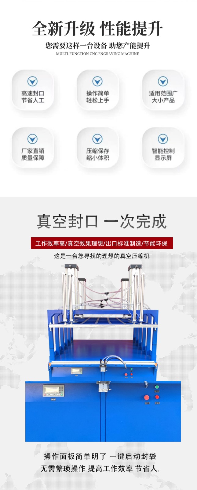 - 產品的可壓縮性和脆弱性:對于可壓縮性強的產品,如羽絨被、泡沫產品等,可以選擇具有壓縮功能的設備,以充分利用空間。但對于脆弱的產品,如精密電子元件、易碎工藝品等,要注意壓縮功能可能對產品造成的損壞,或者選擇具有精細壓縮控制功能的設備,確保產品在壓縮過程中的安全。同時,對于易氧化、易受潮的產品,如食品、藥品等,要重點考慮設備的真空性能,確保能夠達到較高的真空度,有效延長產品的保質期。
